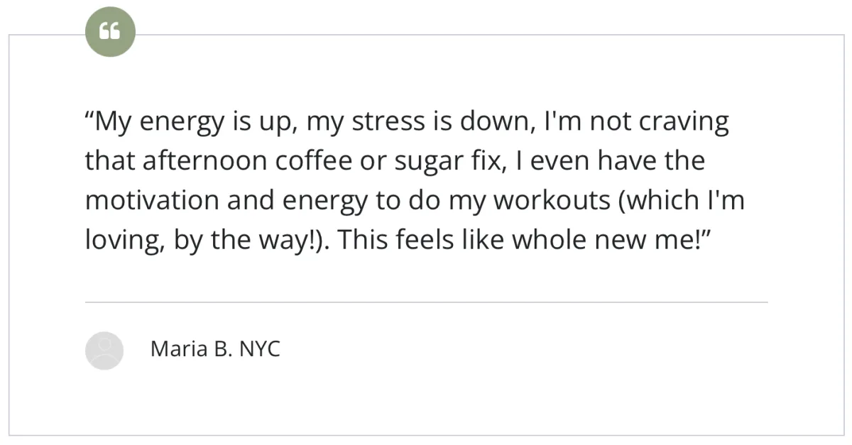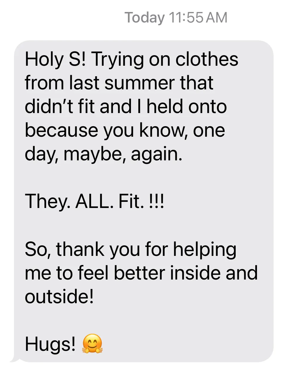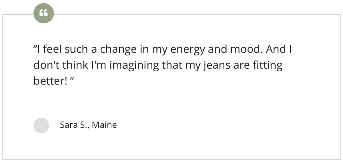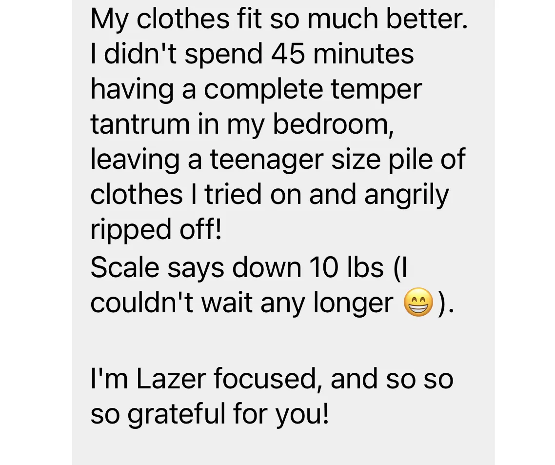 "My body composition is changing for the better, my gut issues are healing, and best of all I can feel my nervous system starting to heal & relax, my anxiety has lessened and my shoulders are no longer up around my ears."